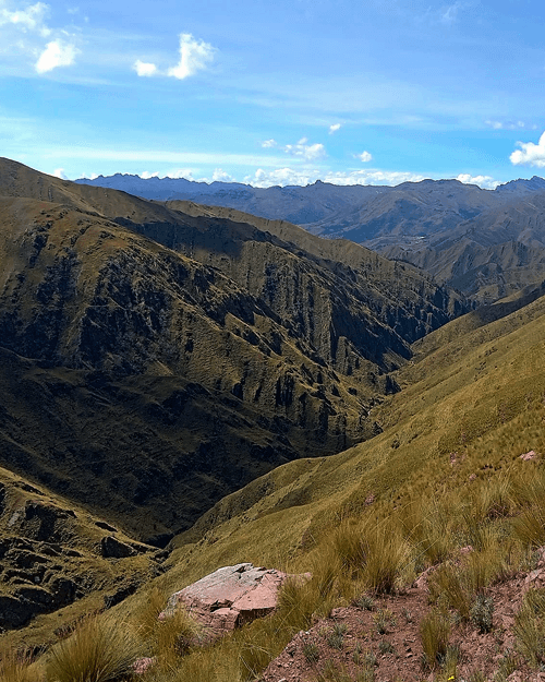 El día inicia temprano con el recojo en tu hotel en Cusco alrededor de las 6:00 am, para trasladarnos en transporte privado hasta la comunidad de Tauca (3,750 m.s.n.m.), punto de inicio de la caminata. Ascenderemos por paisajes andinos hasta llegar al Abra Pucamarca (4,200 m.s.n.m.), desde donde se aprecian montañas y lagunas altoandinas.
